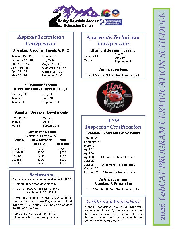 LabCAT PROGRAM CERTIFICATION SCHEDULE FOR 2026